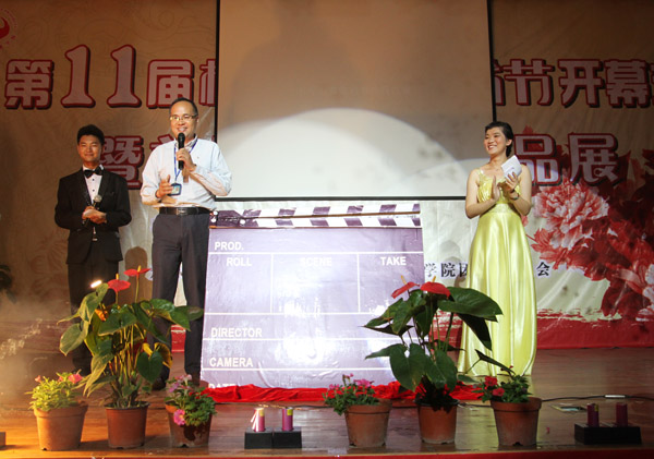 在热烈的掌声中,校党委副书记林长兴登台扣动场记板并宣布第十一届校园文化艺术节正式开幕。之后,他还兴致勃勃地和现场观众一起观看了本次微电影展的优秀作品《in the spring》和《象城故事》。