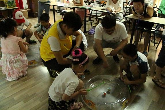 信息学院赴望春街道“追梦”暑期社会实践团队与孩子们一起玩陀螺