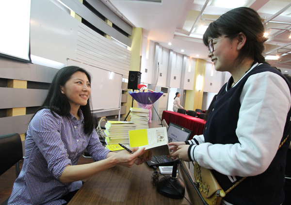 分享会后,王菲与在座同学进行了互动,分别就书名寓意、英国见闻、女生的人生选择等问题进行了热烈讨论。讲座结束后,还进行了签名活动。