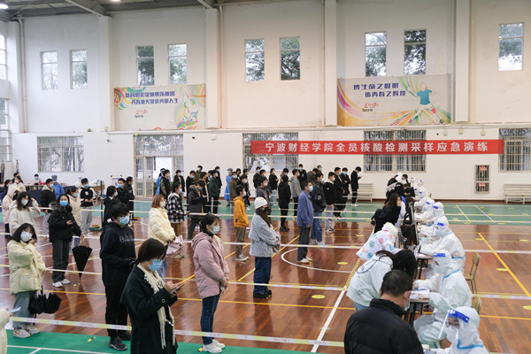 另据消息,我校杭州湾校区也于16日进行了全员核酸检测采样应急演练。